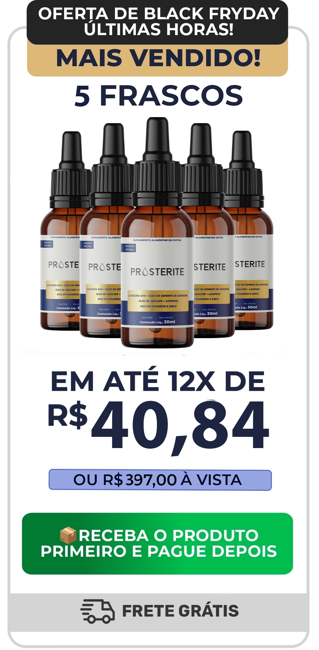 O Prosterite combina ativos poderosos que desinflamam a próstata, aliviam o desconforto urinário e ainda recuperam sua energia sexual.
